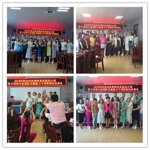 根据河南省教育厅《关于做好 2018 年河南省高等职业院校教师素质提高计划骨干教师培训工作的通知》(教高〔2018〕409 号),我校承担的高等职业院校教师素质提高计划2018年国家级培训项目—骨干培训专家团队建设研修班,经过10天紧张而充实的集中培训,已圆满完成培训任务,顺利结业。