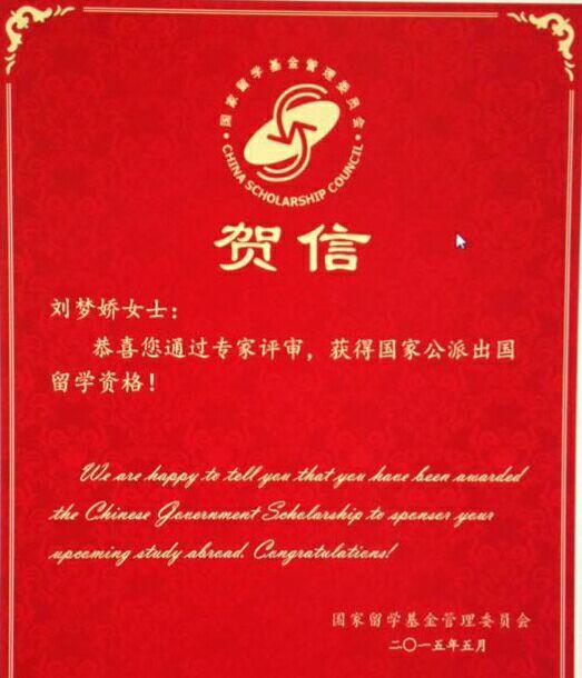 恭贺我校2011级毕业生、畜牧兽医专业本科自考毕业生、四川农大硕士刘梦娇同学被“2015年国家建设高水平大学公派研究生项目”录取为德国亚琛工业大学纳米医学专业博士研究生!