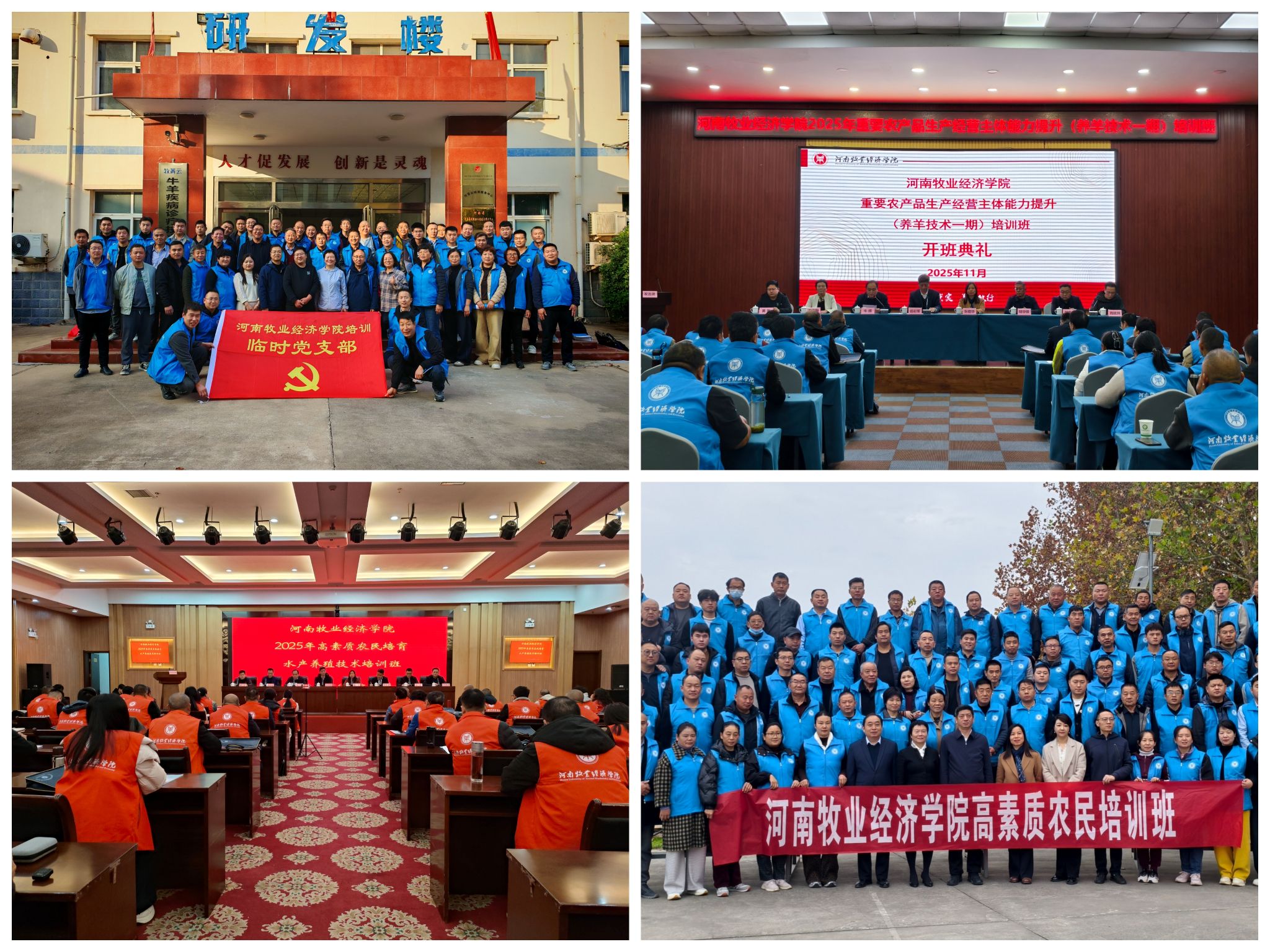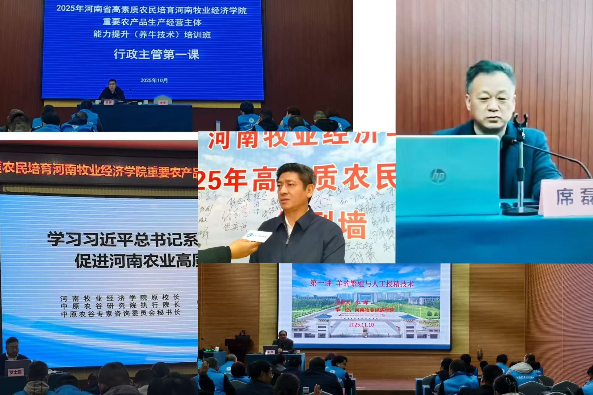 培训内容紧扣国家乡村振兴战略与农业强国建设目标,针对河南省现代畜牧业、水产养殖业及农业经营管理的实际需求精准设计课程。内容突出“实用、实效、前沿”,汇聚了我校动物科技学院、动物医药学院等多位教授专家,传授疫病防控、科学饲养、水质调控等核心技术。河南省农业农村厅科技教育处副处长亲授“行政主管第一课”,深入解读我省高素质农民培育政策与相关要求。此外,培训还邀请行业专家详细讲解强农惠农富农政策,并融入智慧农业、电商营销、现代管理等前沿理念。