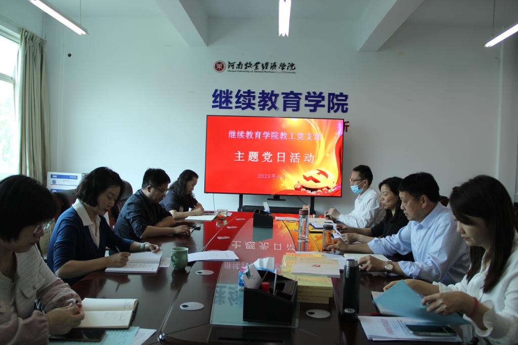 首先,吕琳同志领学了习近平总书记在学习贯彻习近平新时代中国特色社会主义思想主题教育工作会议上的重要讲话精神,以及学校印发的《关于在全校党员中深入开展学习贯彻习近平新时代中国特色社会主义思想主题教育的实施方案》,介绍了开展主题教育的总要求、根本任务、具体目标和聚焦解决问题。接着,全体党员观看了学习强国河南广播电视台《河南新闻联播》栏目的新闻视频:凝心铸魂 团结奋斗 习近平总书记在学习贯彻习近平新时代中国特色社会主义思想主题教育工作会议上的重要讲话在河南党员干部中引发强烈反响。