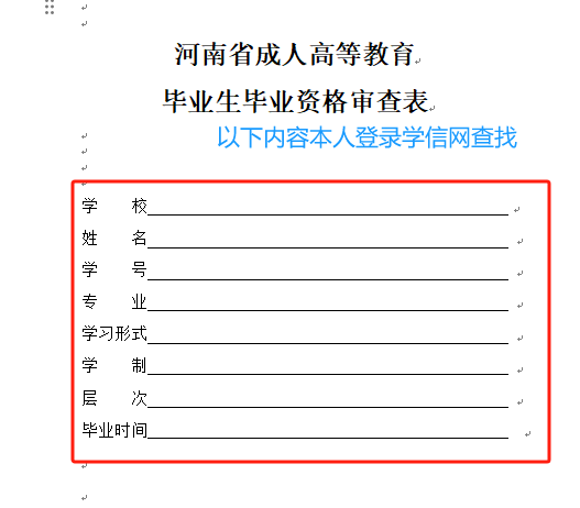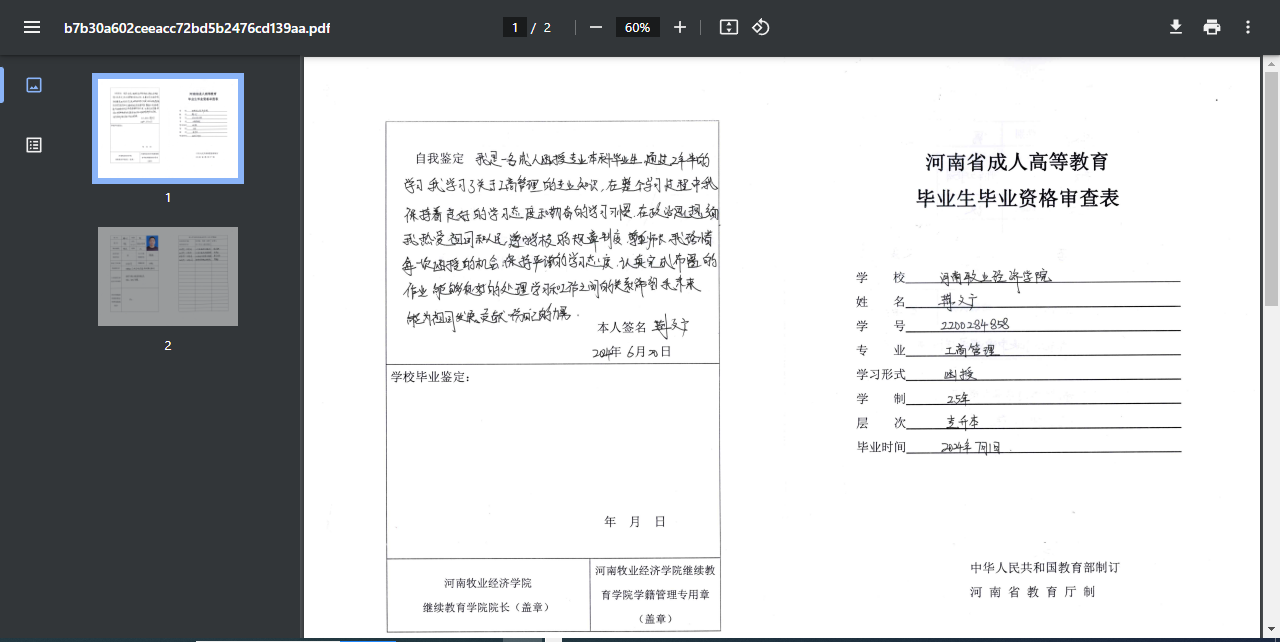 附件【河南省成人高等教育毕业生毕业资格审查表.pdf已下载